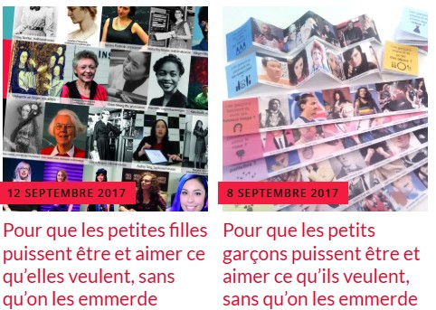 Je vous invite, si vous ne les connaissez pas déjà, à consulter les tutos anti-sexisme de Maman Rodarde. Cette maman avait fabriqué des cartes pour montrer – prouver – à son fils de 5 ans qu’il pouvait faire et être ce qu’il voulait, et que, garçons ou filles, on a les mêmes options !
